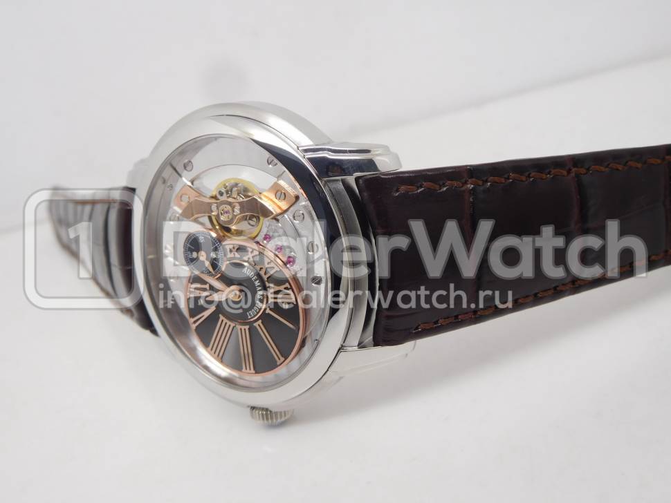 | Ремешок | Коричневый кожаный ремешок, с простым (с помощью шипа) стальным замком Audemars Piguet |