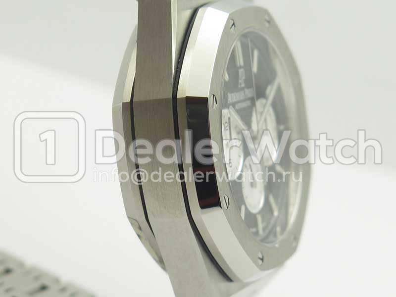 Корпус часов Audemars Piguet Royal Oak Chrono 26331ST имеет размеры 41 х 14 мм. Выпуклая задняя крышка на 6 винтах и гравировкой по радиусу полированного кольца, с указанием серийного номера. Водозащита часов 10 АТМ.