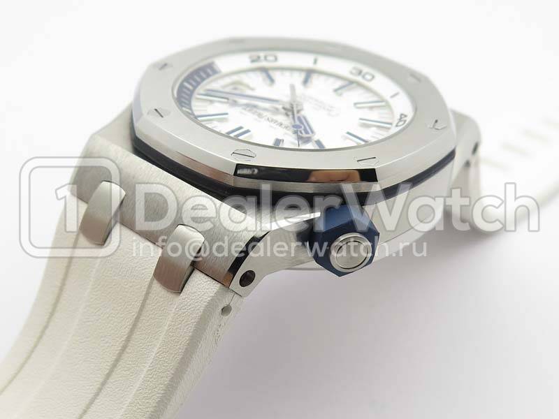 | Ремешок | Белый (синий) каучуковый ремешок Royal Oak Diver, с простым (с помощью шипа) замком Audemars Piguet |