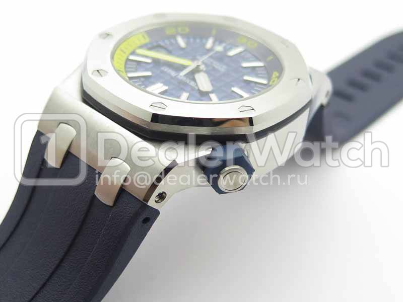 | Ремешок | Синий каучуковый ремешок Royal Oak Diver, с простым (с помощью шипа) замком Audemars Piguet |