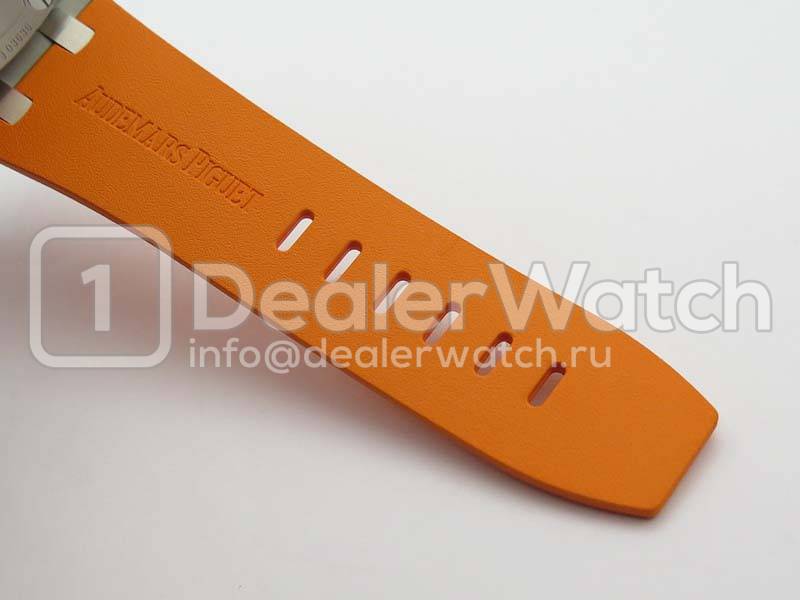 | Ремешок | Оранжевый (синий) каучуковый ремешок Royal Oak Diver, с простым (с помощью шипа) замком Audemars Piguet |