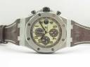 Корпус часов Audemars Piguet Royal Oak Offshore Chronograph Safari имеет размеры 42 х 15 мм. (по безелю). С сапфировым стеклом, на 8 винтах и гравировкой по радиусу сатинированного кольца, с указанием серийного номера. Декорированный ротор механизма. Водозащита часов 5 АТМ.