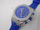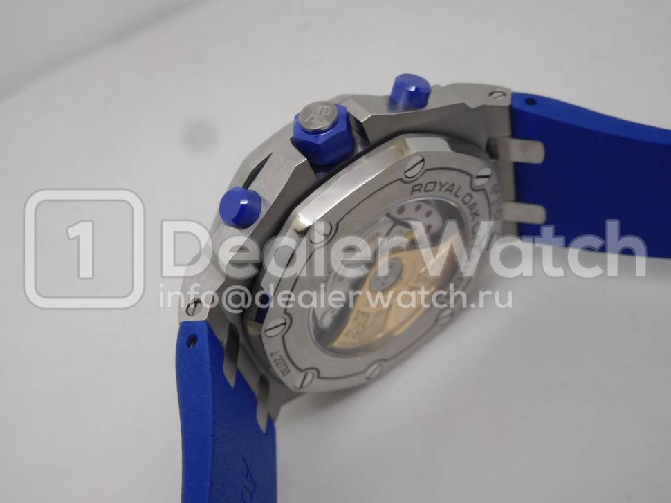 | Ремешок | Синий каучуковый ремешок образца 2014 года, с простым стальным сатинированным замком Audemars Piguet. |