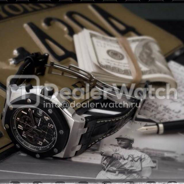 | Ремешок | Черный кожаный ремешок, с двойной раскладывающейся застежкой Audemars Piguet. Либо черный каучуковый ремешок Royal Oak Offshore |