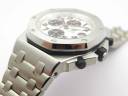 | Циферблат | Белый, гильошированный (Mega Tapisserie). Арабские часовые индексы и стрелки Royal Oak, покрытые люминесцентным составом Super LumiNovaС1. Малые циферблаты хронографа и циферблат малой секундной стрелки в отметке на 12.00 часов. Окно даты на 15.00 часов |