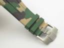 В комплекте с часами Royal Oak Offshore поставляется зелёный камуфляжный каучуковый ремешок Royal Oak Offshore нового образца, с простым (с помощью шипа) титановым замком Audemars Piguet