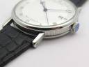 Циферблат посеребрённый, гильошированный, эмаль. Римские часовые индексы по радиусу циферблата и классические вороненные стрелки. Окно даты, в отметке на 15.00 часов. Сапфировое стекло, с внутренним просветляющим антибликовым покрытием. Фиксированный в одном положении, стальной полированный безель.