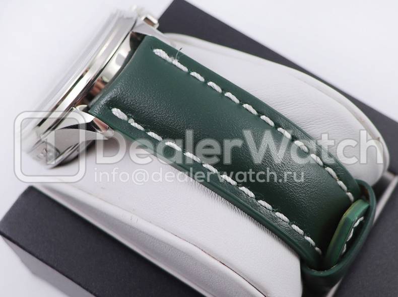 Циферблат зеленый, тёмные малые циферблаты. Часовые метки полированные, мечевидные стрелки, покрытые люминесцентным составом. Счетчики хронографа. Окно даты, расположенное в отметке на 18:00 часов. Сапфировое стекло, с двухсторонним просветляющим антибликовым покрытием. Фиксированный в одном положении, стальной полированный безель.
