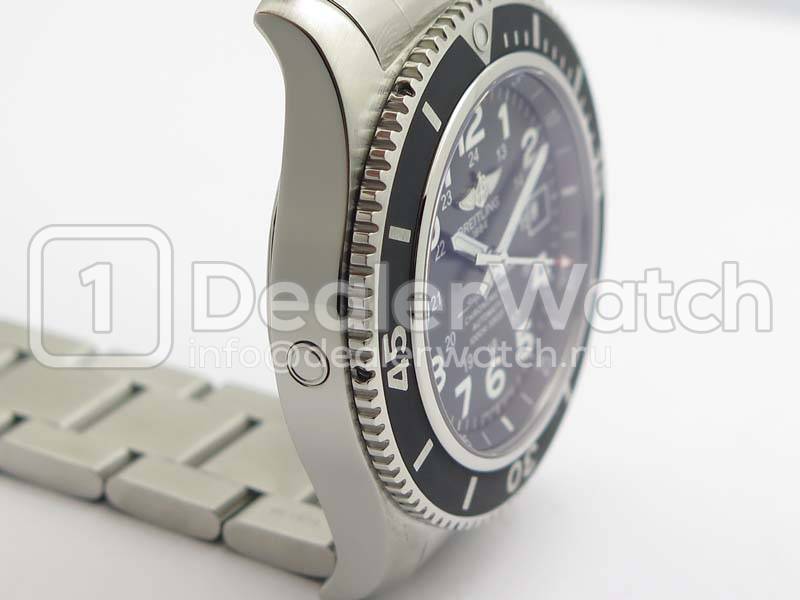 | Ремешок | Оригинальный черный (синий) каучуковый ремешок SuperOcean, с простым (с помощью шипа) замком Breitling |