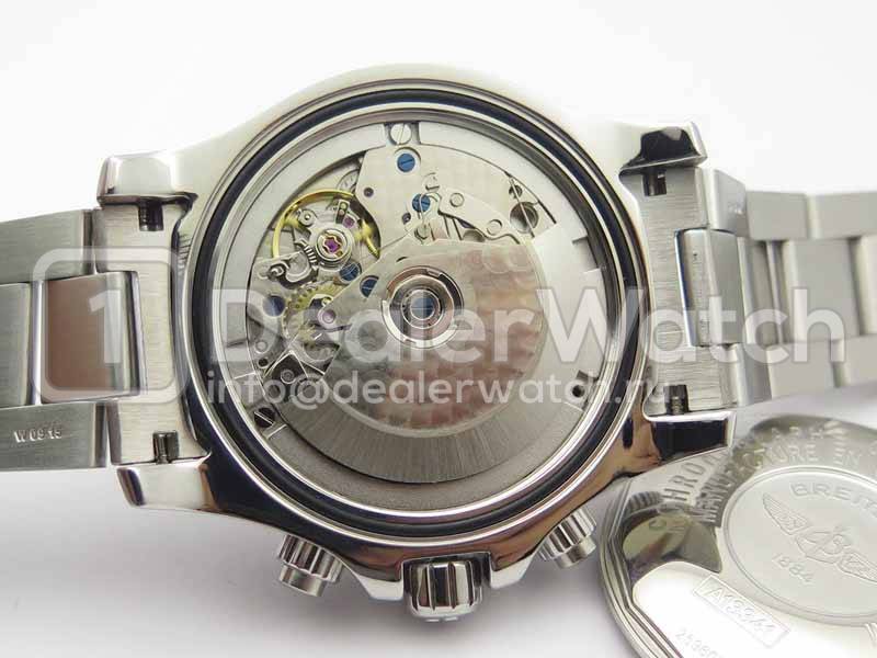 | Задняя крышка | Многогранная, завинчивающаяся задняя крышка из полированной стали, с гравировкой по радиусу и по центру и указанием серийного номера и номера референса; Индивидуальный серийный номер; Гравировка маркировки Breitling с обратной стороны крышки |