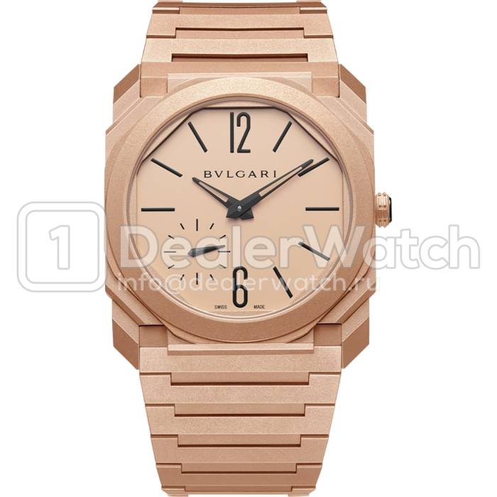 Корпус часов Bulgari Octo Finissimo Automatic Titanium 102912 имеет размеры 40 х 9.2 мм. С сапфировым стеклом, на 8 винтах и гравировкой по радиусу сатинированного кольца, с указанием серийного номера. Водозащита часов 5 АТМ.