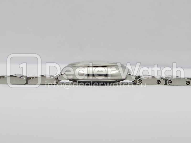 Циферблат посеребренный. Большие черные римские часовые индексы и классические вороненные стрелки. Сапфировое стекло, с внутренним просветляющим антибликовым покрытием. Фиксированный в одном положении, стальной полированный безель.