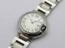 Корпус часов Cartier Ballon Bleu de Cartier 28mm имеет размеры 28.5 x 9.5 мм. Из сатинированной стали на 8 винтах и гравировкой по радиусу, с указанием серийного номера. Индивидуальный серийный номер. Водозащита часов 5 АТМ.