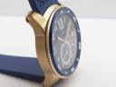 Циферблат синий, с круговым гильошированием по радиусу. Римские часовые индексы. Мечевидные позолоченные стрелки. Люминесцентный состав Super LumiNova С3. Циферблат малой секундной стрелки, в отметке на 18.00 часов. Окно даты в отметке на 15.00 часов. Сапфировое стекло, с внутренним просветляющим антибликовым покрытием. Однонаправленный, вращающийся дайверский безель, покрытый синим DLC напылением и с направляющей люминесцентной меткой в отметке на 12.00 часов.
