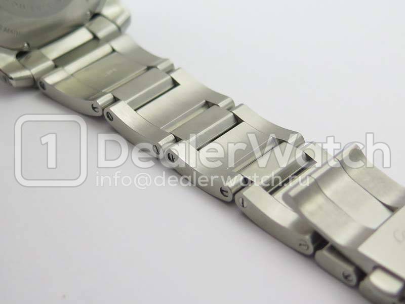 | Ремешок | Стальной браслет из сатинированной/полированной стали. Либо синий каучуковый ремешок нового образца Cartier Diver, с классической (с помощью шипа), стальной застежкой Cartier |