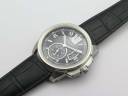 Циферблат черный, с круговым гильошированием по радиусу. Белые римские часовые индексы. Мечевидные полированные стрелки, покрытые люминесцентным составом. Циферблат малой секундной стрелки, в отметке на 18.00 часов. Окно даты в отметке на 15.00 часов. Сапфировое. Фиксированный в одном положении, стальной полированный безель.
