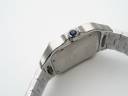 Корпус часов Cartier Santos Large имеет размеры 40 x 48 х 9.0 мм. На 8 винтах из сатинированной стали и гравировкой по радиусу, с указанием серийного номера. Индивидуальный серийный номер. Водозащита часов 5 АТМ.