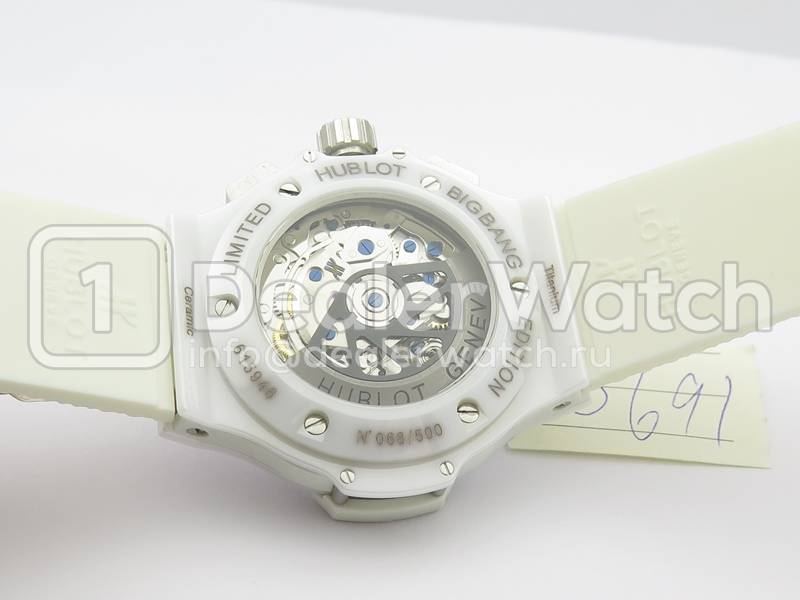 | Ремешок | Белый каучуковый ремешок, с двойной раскладывающейся стальной застежкой Hublot |