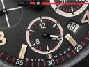 Циферблат черный. Накладные арабские часовые индексы и мечевидные стрелки, покрытые белым люминесцентным составом. Счетчики хронографа в отметках на 15 и 18.00 часов и малая секундная стрелка в отметке на 21.00 часов. Окно даты в отметке на 16.30 часов. Сапфировое стекло, с двухсторонним антибликовым покрытием. Фиксированный в одном положении 6 Н-образными титановыми винтами, полированный черный керамический безель.