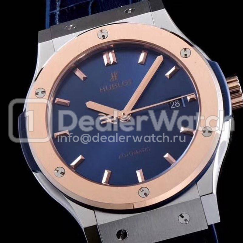 В комплекте с часами Big Bang Classic Fusion поставляется синий кожаный (кожа/каучук) ремешок, с двойной раскладывающейся стальной застежкой Hublot