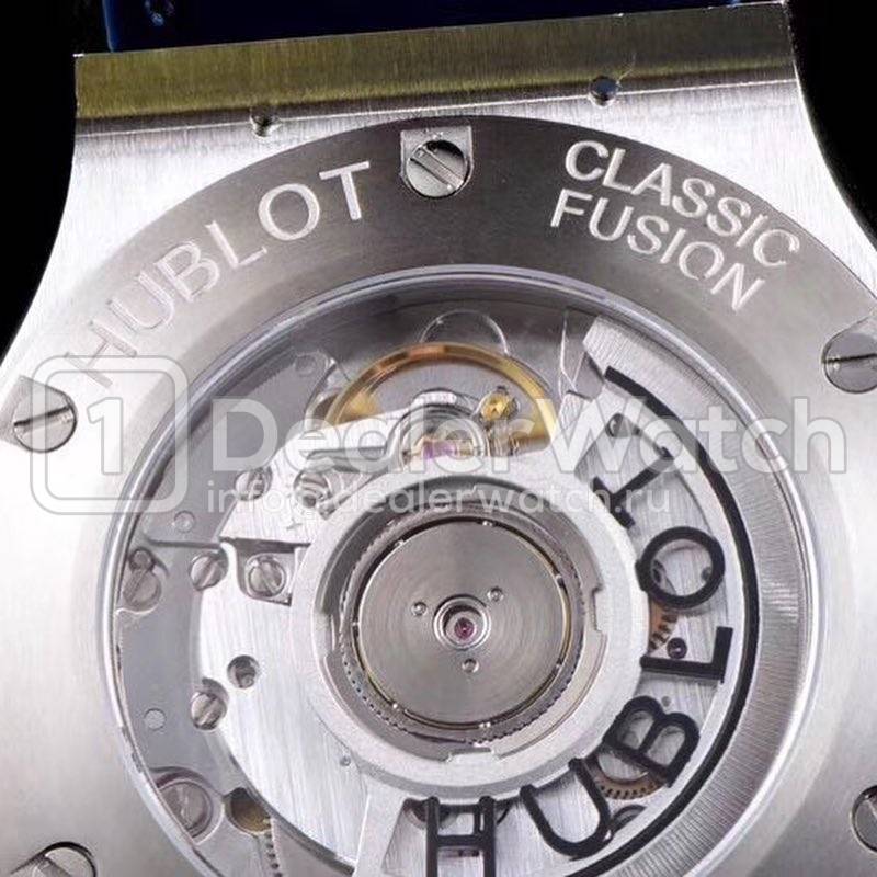 Корпус часов Hublot Classic Fusion 42mm имеет размеры 42 х 12 мм. С сапфировым стеклом на 6 винтах и гравировкой по радиусу сатинированного кольца, с указанием серийного номера. Индивидуальный серийный номер. Водозащита часов 5 АТМ.