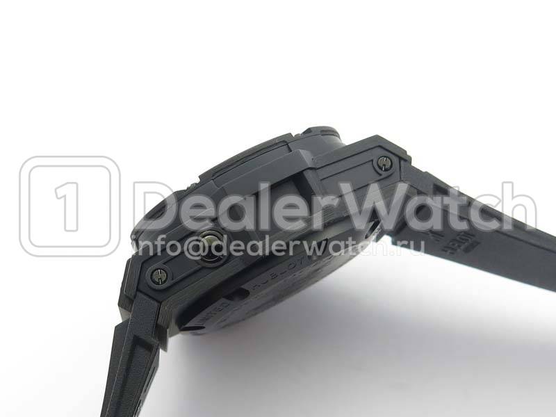 | Ремешок | Черный каучуковый ремешок, с простым (с помощью шипа) титановым сендвич замков Hublot, состоящим из нескольких частей и скрепленным двумя винтами и кнопками быстрой смены ремешка |