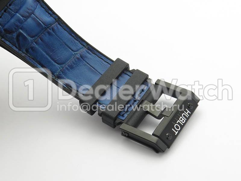 РемешокЧерный каучуковый ремешок, с простым (с помощью шипа) титановым сендвич замков Hublot, состоящим из нескольких частей и скрепленным двумя винтами и кнопками быстрой смены ремешка