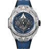 | Ремешок | Синий каучуковый ремешок, с двойной раскладывающейся титановой застежкой Hublot |