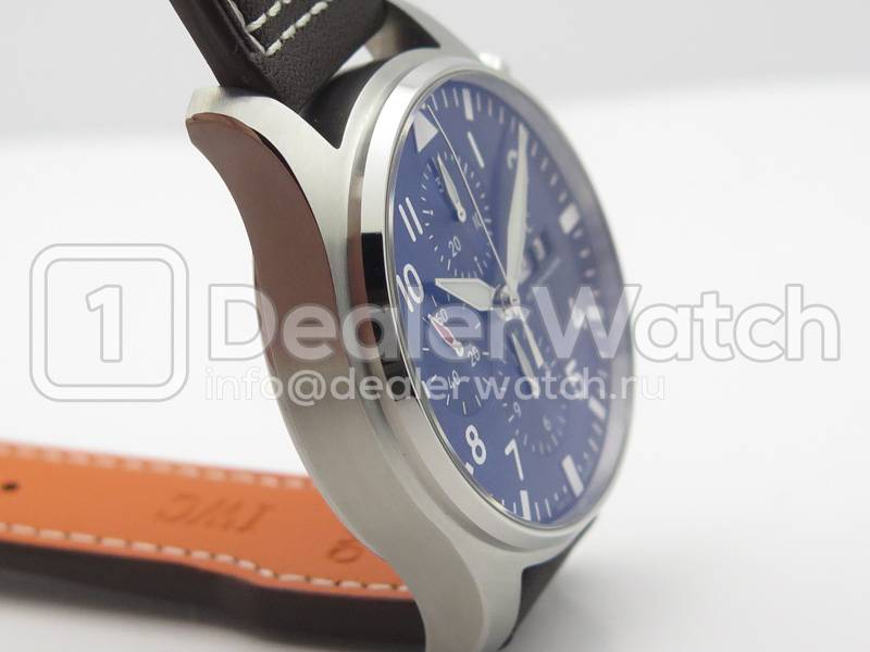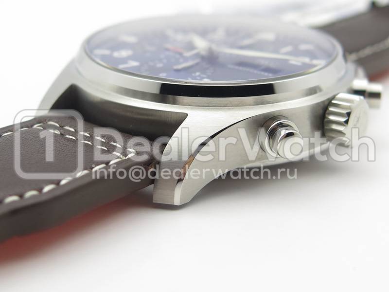 В комплекте с часами Pilot`s Watches Chronograph поставляется коричневый кожаный ремешок из телячьей кожи, прошитый белыми нитками, с простым (с помощью шипа) замком IWC. Либо стальной браслет