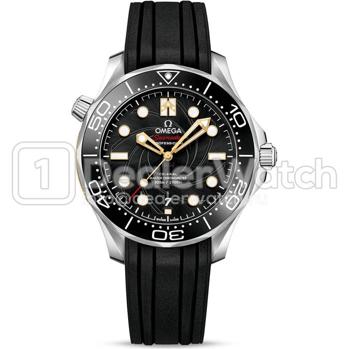В комплекте с часами поставляется стальной браслет из сатинированной/полтрованной стали 316L, с двойной раскладывающейся застежкой Omega. Либо чёрный каучуковый ремешок образца 2018 года, с простой (с помощью шипа) застежкой Omega