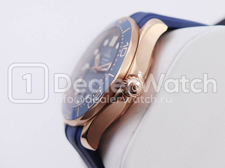 В комплекте с часами Seamaster Diver 300M поставляется синий каучуковый ремешок образца 2019 года, с простой (с помощью шипа) застежкой Omega