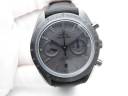 Корпус часов Omega Speedmaster Moonwatch Co-Axial Ceramic имеет размеры 44,5 х 18,5 мм. Выпуклая завинчивающаяся задняя крышка из сатинированной стали и гравировкой по радиусу, с указанием серийного номера и маркировки Omega на дужках корпуса. Декорированный механизм. Водозащита часов 5 АТМ.