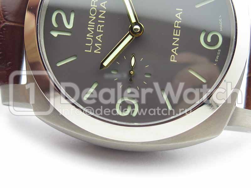 | Ремешок | Коричневый кожаный ремешок из кожи теленка, с простым (с помощью шипа) V-образным титановым замком Panerai. Кнопки быстрой смены ремешка, расположенные в отметках на 13 и 17.00 часов |