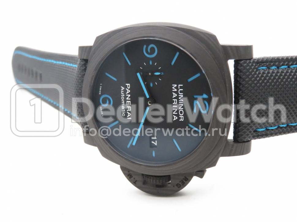 Циферблат чёрный, матовый, сендвич. Часовые индексы и чёрные стрелки покрытые синим люминесцентным составом Super LumiNova C1 + C3. Циферблат малой секундной стрелки, расположенный в отметке на 21.00 ч. Окно даты, расположенное в отметке на 15.00 ч.. Сапфировое стекло 2,3 мм, с внутренним просветляющим антибликовым покрытием. Фиксированный в одном положении, матированный углеродный безель.