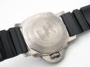 В комплекте с часами поставляется черный каучуковый ремешок Panerai, с простым (с помощью шипа) V-образным титановым замком Panerai, покрытым черным DLC напылением