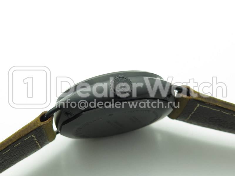 | Ремешок | Замшевый коричневый кожаный ремешок Assolutamente, с простым (с помощью шипа) V-образным замком Panerai, покрытым матированным черным DLC напылением |