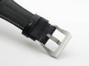 В комплекте с часами Radiomir поставляется черный кожаный ремешок, прошитый белыми нитками, с простым (с помощью шипа) V-образным замком Panerai из сатинированной стали