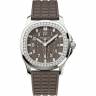 Циферблат коричневый, гильошированный. Часовые риски и полированные мечевидные стрелки, покрытые люминесцентным составом Super LumiNova С1 + C3. Окно даты, расположенное в отметке на 15.00 часов. Сапфировое стекло с внутренним просветляющим антибликовым покрытием. Фиксированный в одном положении, многогранный полированный безель, инкрустированный по радиусу 46 белыми сапфирами.