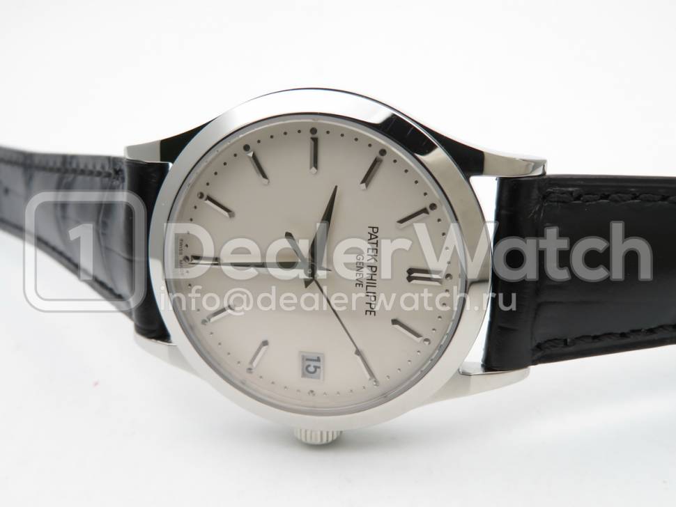В комплекте с часами Calatrava поставляется чёрный кожаный ремешок с простым (с помощью шипа) стальным полированным замком Patek Philippe. Система быстрой смены ремешка