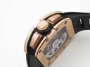 Корпус часов Richard Mille RM 011 Flyback Chronograph имеет размеры 42 х 50 х 17.4 мм. Карбоновая задняя крышка с сапфировым стеклом, покрытым антибликовым покрытием и гравировкой по радиусу, с указанием номера из лимитированной серии. Декорированный и модифицированный механизм. Водозащита часов 5 АТМ.
