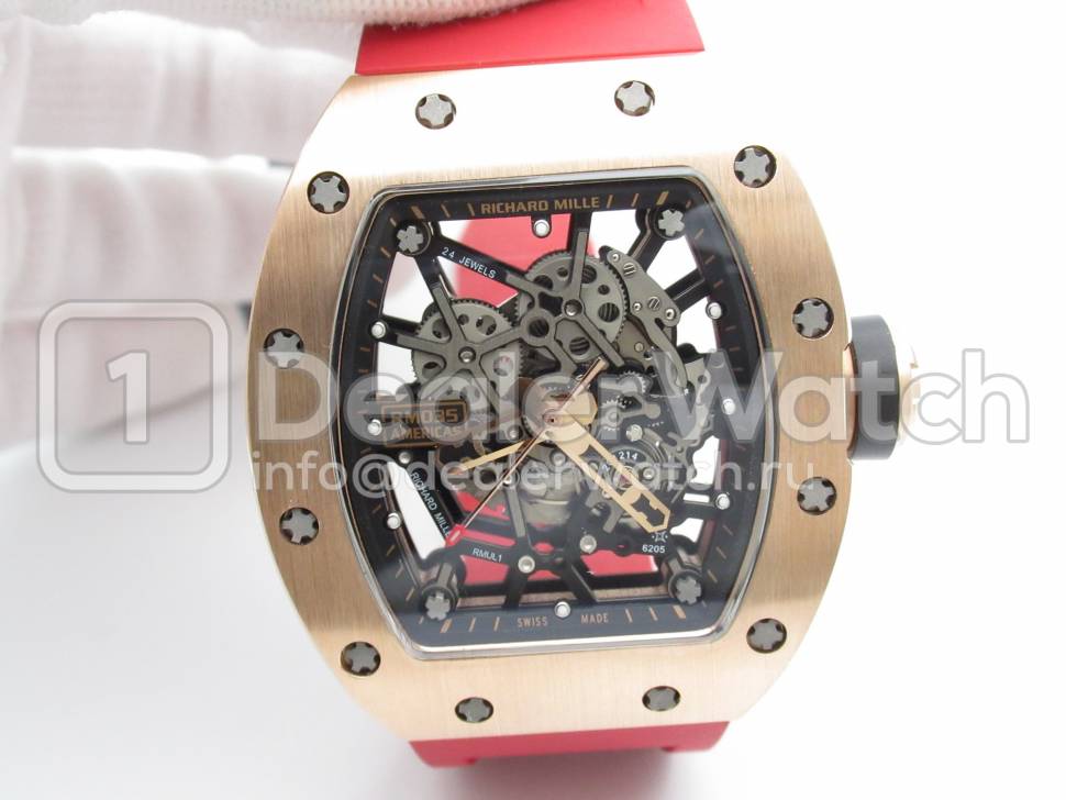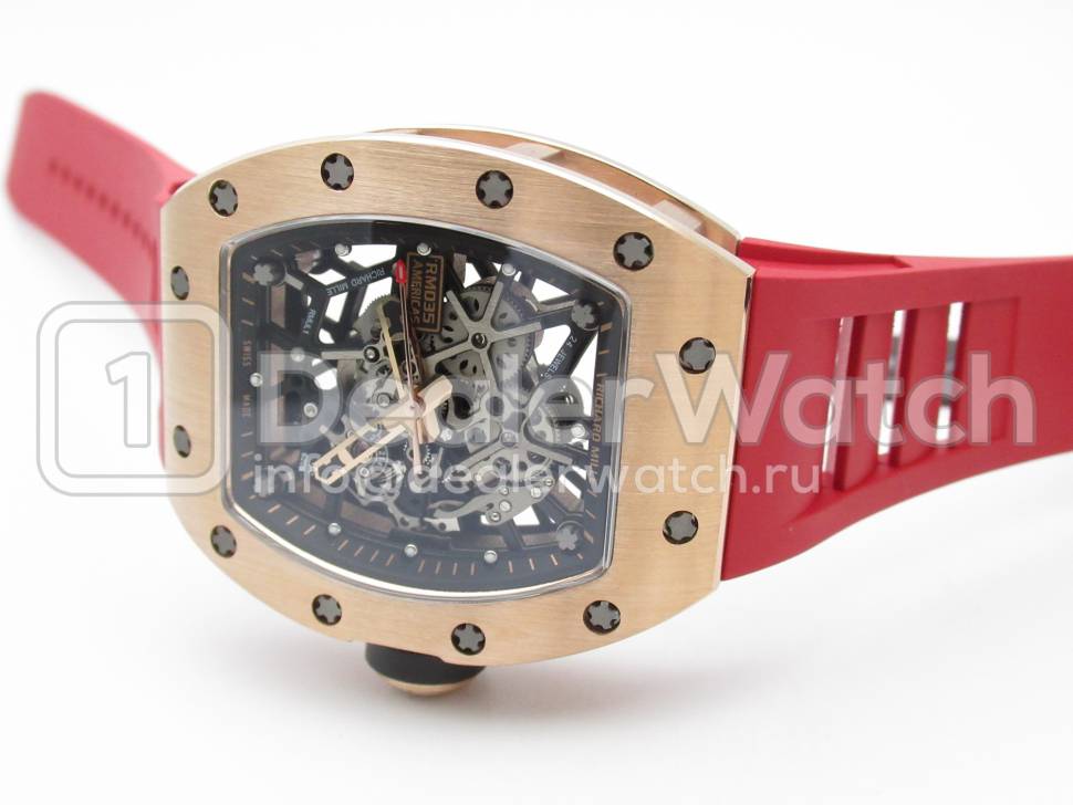 В комплекте с часами RM 035 поставляется красный каучуковый ремешок, с двойной раскладывающейся титановой застежкой Richard Mille