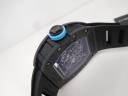 Корпус часов Richard Mille RM 055 Bubba Watson Carbon имеет размеры 50 х 42.7 х 15.5 мм. С сапфировым стеклом, покрытым внутренним просветляющим антибликовым покрытием на 8 многогранных винтах и гравировкой по радиусу керамического кольца, с указанием серийного номера. Декорированный механизм. Водозащита часов 5 АТМ.