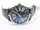 Циферблат черный переливающийся, гильошированный. Большие чёрные эмалевые римские часовые индексы по радиусу циферблата и стальные, полированные стрелки с гранями. Окно даты, расположенное в отметке на 18:00 часов. Сапфировое стекло с двухсторонним просветляющим антибликовым покрытием. Фиксированный в одном положении, стальной полированный безель с крупными насечками.