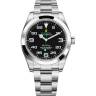 Корпус часов Rolex Oyster Perpetual Air King имеет размеры 40 х 11 мм. Выпуклая завинчивающаяся задняя крышка из сатинированной стали. Гравировка маркировки Rolex с внутренней стороны крышки и на конечных звеньях браслета. Механизм защищен антимагнитной пластиной. Водозащита часов 10 АТМ.