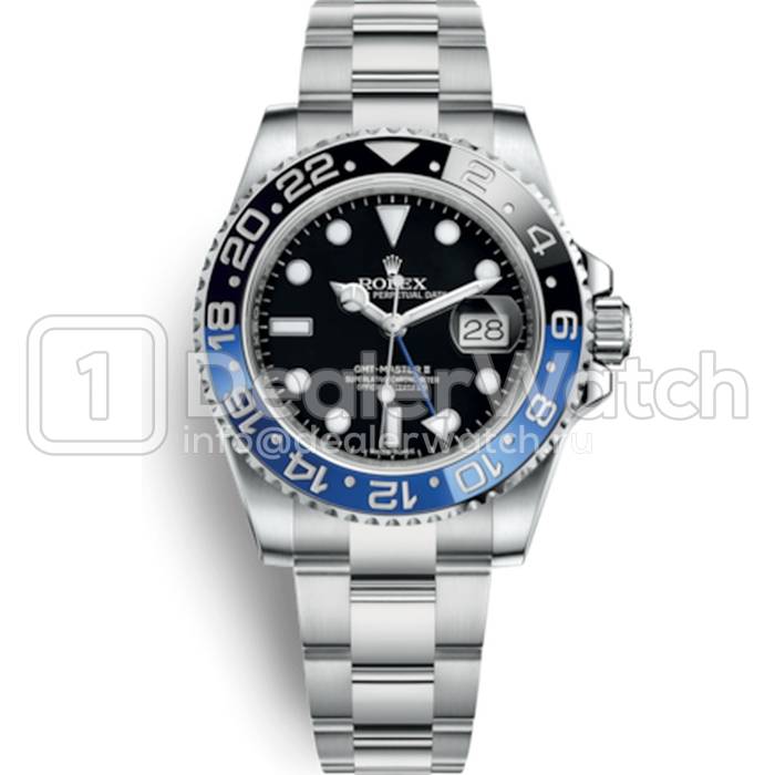 Циферблат черный. Часовые метки и полированные стрелки, покрытые люминесцентным составом Super LumiNova С3, зеленого свечения. Окно даты в отметке на 15.00 часов под увеличительным окном 2,5. Гравировка маркировки Rolex и серийного номера Rolex на внутреннем ранте. Сапфировое стекло, с антибликовым покрытием на увеличительном циклопе и гравировкой коронки Rolex на стекле в отметке на 18.00 часов. Двунаправленный, вращающийся черный керамический сэндвич безель, с часовыми метками времени GMT (при вращении безеля 24 щелчка).