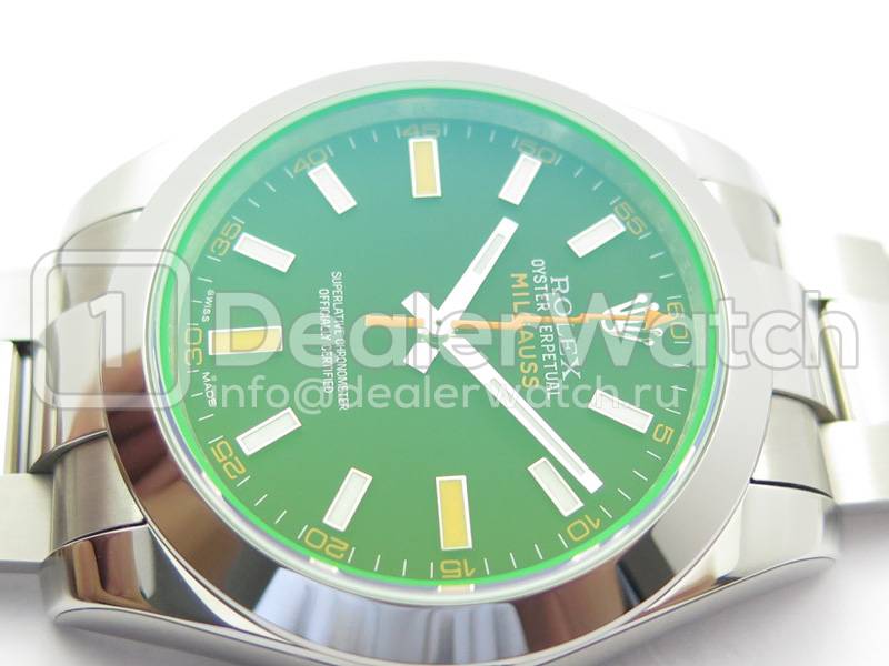 В комплекте с часами Milgauss поставляется стальной браслет из полированной/сатинированной стали Rolex Oyster, с двойной раскладывающейся застёжкой Rolex Oysterclasp и удлиняющим звеном Easylink