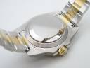 Циферблат черный. Позолоченные часовые метки и полированные стрелки, покрытые люминесцентным составом Super LumiNova С3. Окно даты в отметке на 15.00 часов под увеличительным окном 2,5. Гравировка маркировки Rolex и серийного номера Rolex на внутреннем ранте. Сапфировое стекло, с антибликовым покрытием на увеличительном циклопе и гравировкой коронки Rolex на стекле в отметке на 18.00 часов. Однонаправленный, вращающийся золотой черный керамический сэндвич безель, с минутными метками и направляющей люминесцентной меткой в отметке на 12.00 часов (при вращении безеля 120 щелчков).