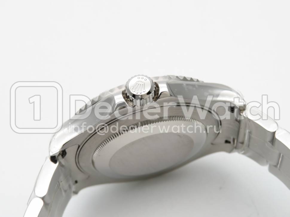 Циферблат посеребренный, с платиновым напылением. Часовые метки и стрелки, покрытые люминесцентным составом Super LumiNova С3. Окно даты в отметке на 15.00 часов под увеличительным окном 2,5. Гравировка маркировки Rolex и серийного номера Rolex на внутреннем ранте. Сапфировое стекло, с антибликовым покрытием на увеличительном циклопе и гравировкой коронки Rolex на стекле в отметке на 18.00 часов. Двунаправленный, вращающийся безель, с полированными минутными метками (при вращении безеля 120 щелчков).