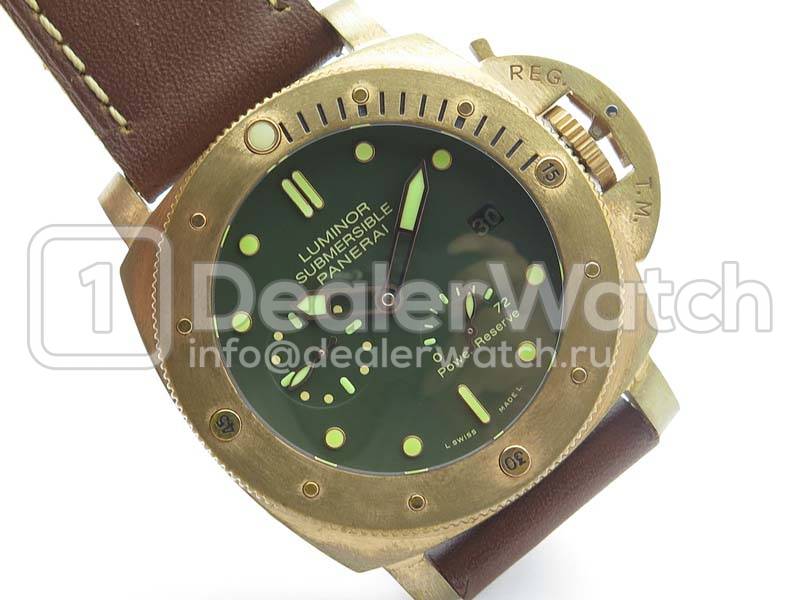 Циферблат зеленый, матовый. Часовые метки и позолоченные стрелки покрытые люминесцентным составом Super LumiNova C1 + C3. Циферблат малой секундной стрелки, расположенный в отметке на 21.00 ч. и окно даты, расположенное в отметке на 15.00 ч. Индикатор запаса хода. Сапфировое стекло 6 мм, с внутренним просветляющим антибликовым покрытием и увеличительной линзой 7 мм. Однонаправленный матовый керамический безель, с направляющей люминесцентной меткой в отметке на 12.00 часов.