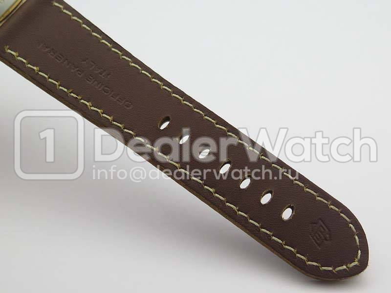 | Ремешок | Коричневый кожаный ремешок, из толстой телячьей кожи, с простым (с помощью шипа) V-образным титановым замком Panerai |